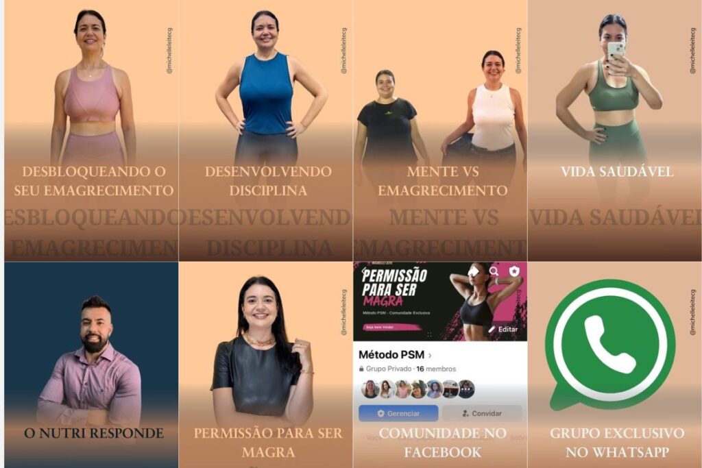 Ao redefinir hábitos, emoções e crenças, Michelle eliminou 50 kg — sem remédios, sem cirurgia, apenas com método e constância. Dessa vitória nasceu o Método PSM – Permissão para Ser Magra, que hoje guia mulheres a repetir a mesma transformação.